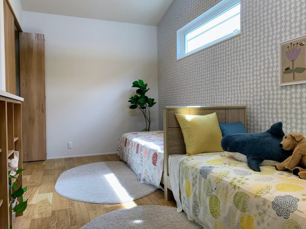2つのベッドが並び、兄弟や姉妹で一緒に使える配置もポイント。