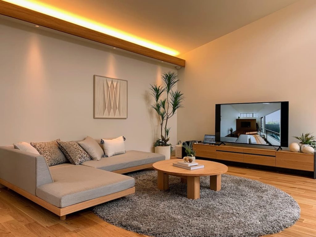 間接照明の柔らかな光と木質感が調和し、洗練されつつも落ち着きのある雰囲気を演出。
