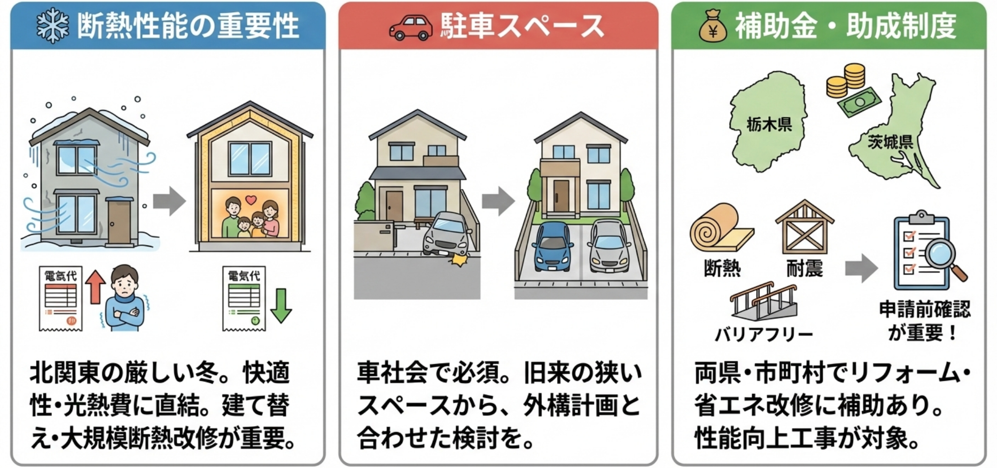 栃木・茨城の冬の寒さは地域特性として厳しく、部分的な断熱改修では根本的な改善にならないこともあります。この点は両県で家を快適に過ごすうえでとても重要です。