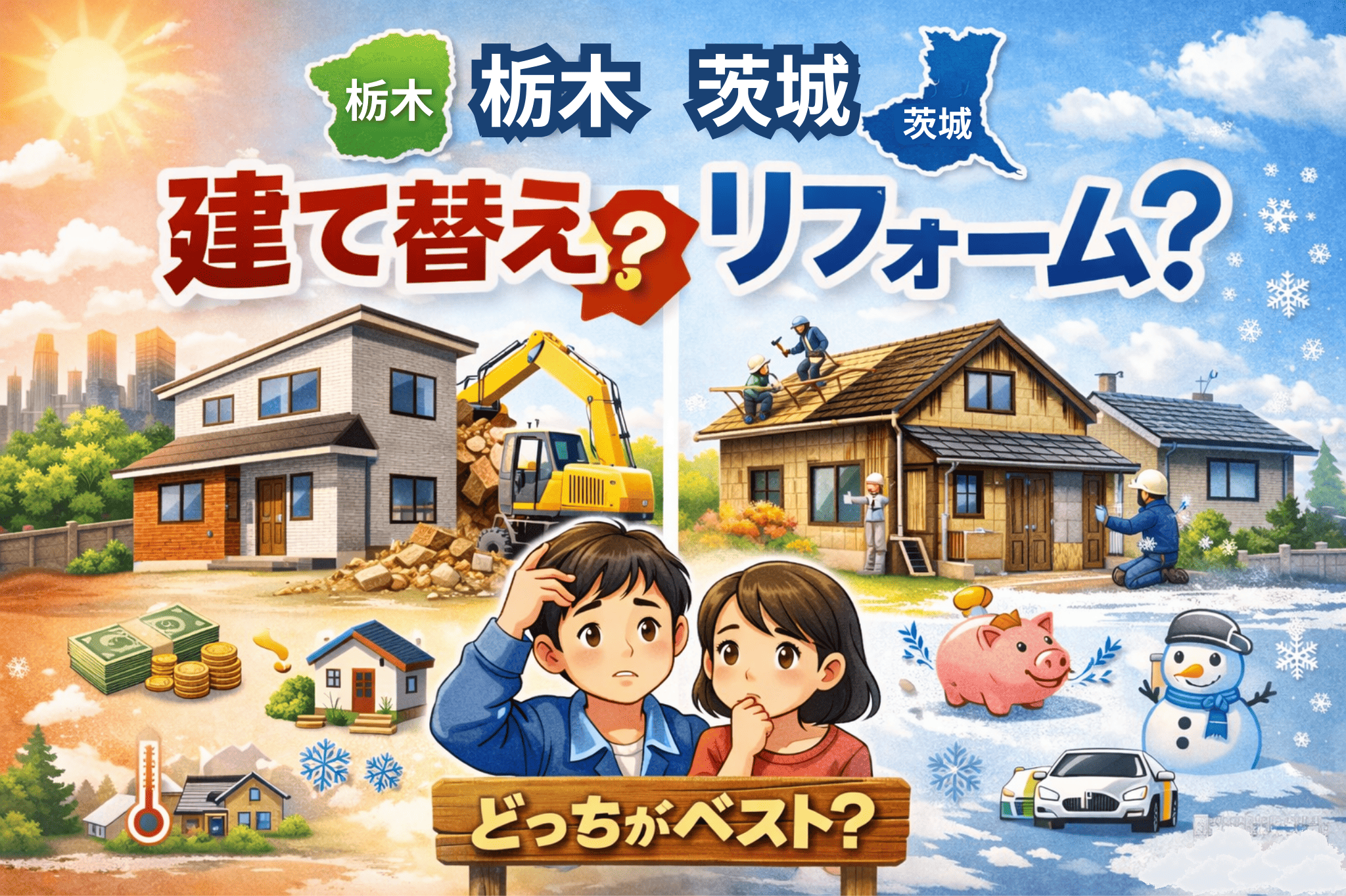 栃木県・茨城県に住む多くの人が、「建て替え(新築)」と「リフォーム(リノベーション)」どちらが良いのかで悩んでいます。
