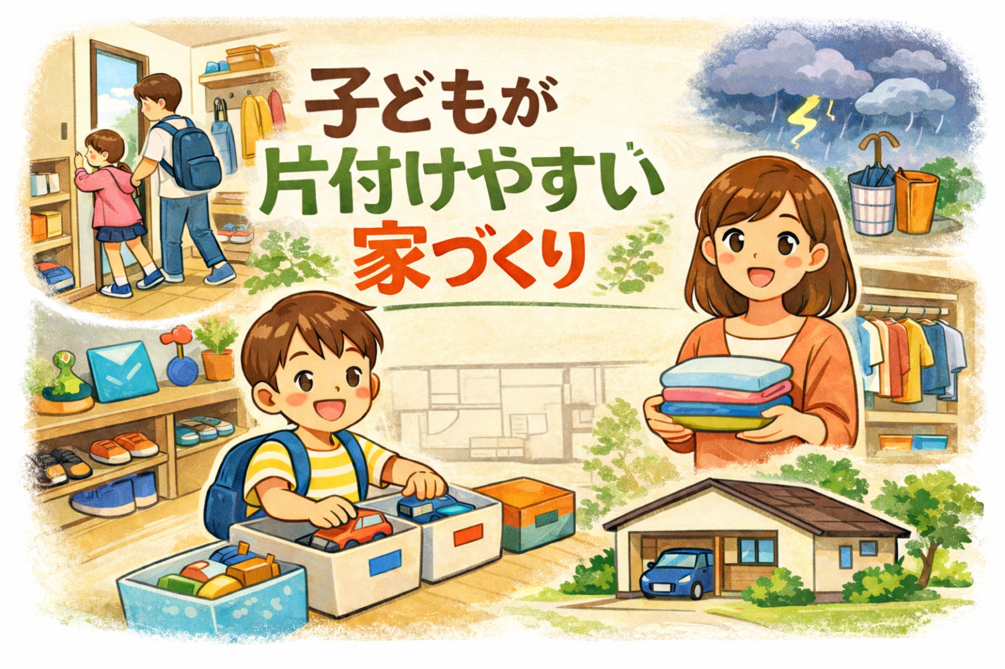 そんな悩みを持つ栃木県・茨城県の子育て世代に向けて、“片付けやすい家づくり”の基本ルールとアイデアをわかりやすく解説します。